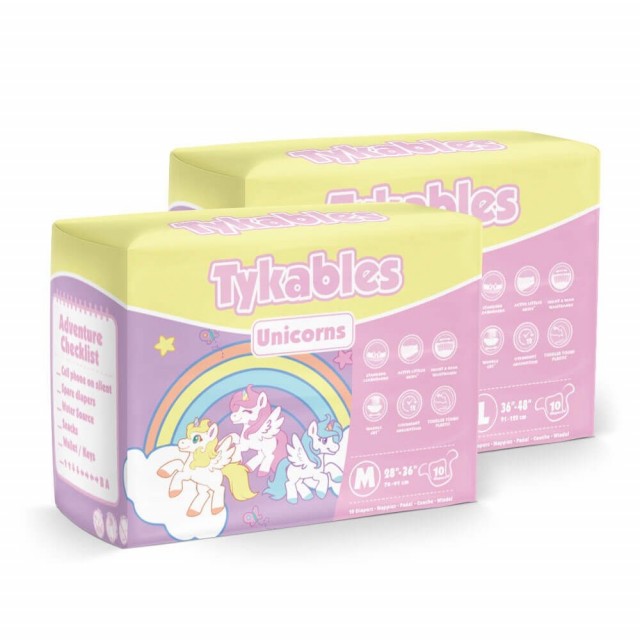Tykables Unicorn er enda et premium kvalitetsprodukt fra Tykables. Kommer med printet plastytterlag og våthetsindikator av stjerner som sakte forsvinner. Det super myke plastytterlaget er veldig sterkt, men designet for å hindre irritasjon mot huden.